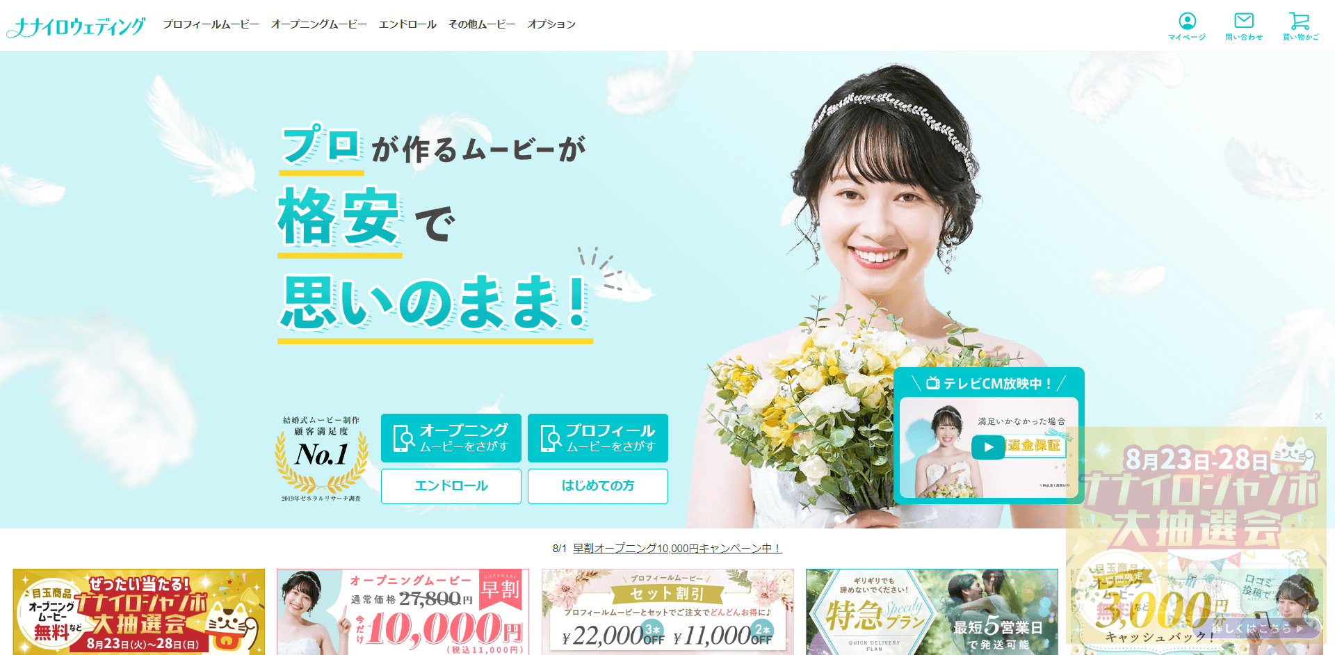動画の種類や保証などはナナイロウェディングと似ていますね。