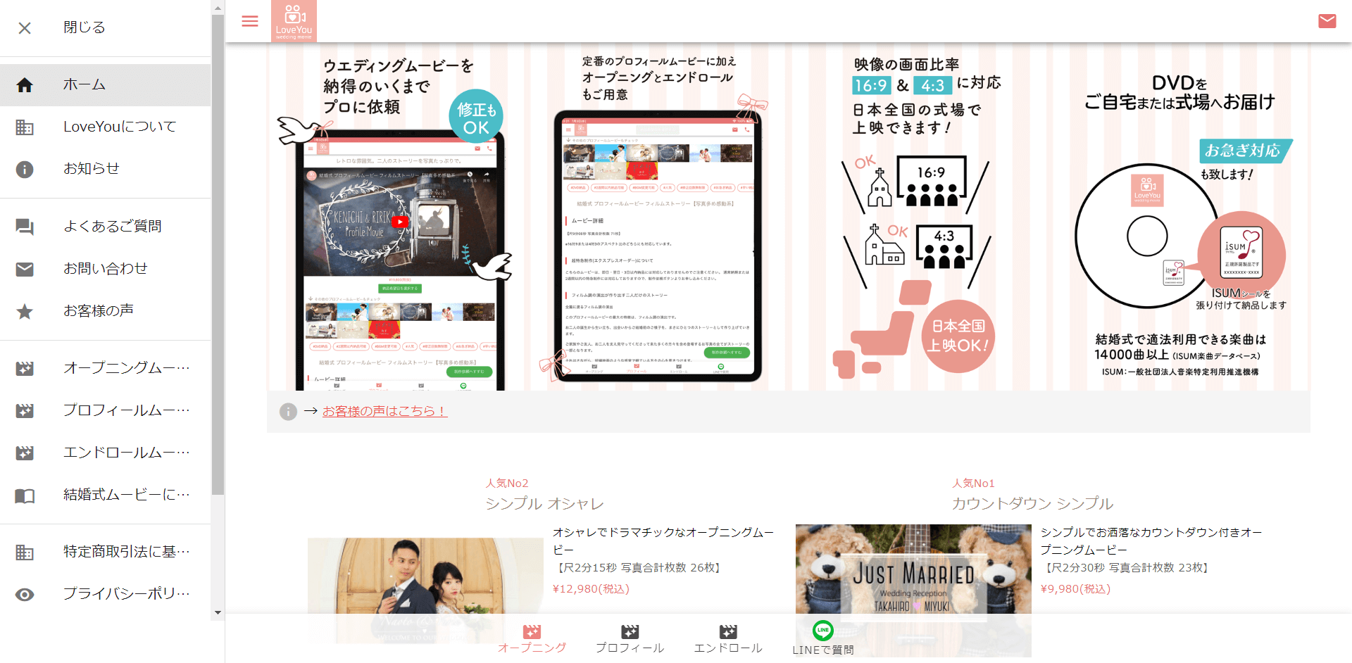 こちらは、どのムービーも一律9,800円で制作しています!シンプルで格安なのが素晴らしいです!